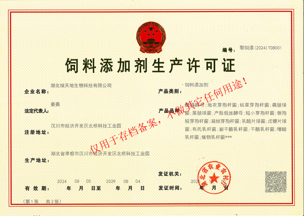 湖北綠天地生物科技有限公司 (簡(jiǎn)稱(chēng)綠天地公司)投資7000萬(wàn)元,擁有25000平方米的廠(chǎng)房和國(guó)內(nèi)先進(jìn)的設(shè)備360臺(tái)套,建有微生物發(fā)酵、發(fā)酵冷凍干燥、低溫造粒等8個(gè)車(chē)間,發(fā)酵罐總?cè)萘?50立方米,專(zhuān)業(yè)的飼用級(jí)益生菌發(fā)酵生產(chǎn)基地。 公司已通過(guò)IS09001:2015質(zhì)量管理體系認(rèn)證。 綠天地公司得到了華中農(nóng)業(yè)大學(xué)、中國(guó)農(nóng)...